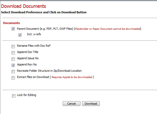 2. User can also download Xref by selecting Incl. X-refs option at the time downloading a Parent Drawings from documents listing page or from basket as shown in below image.